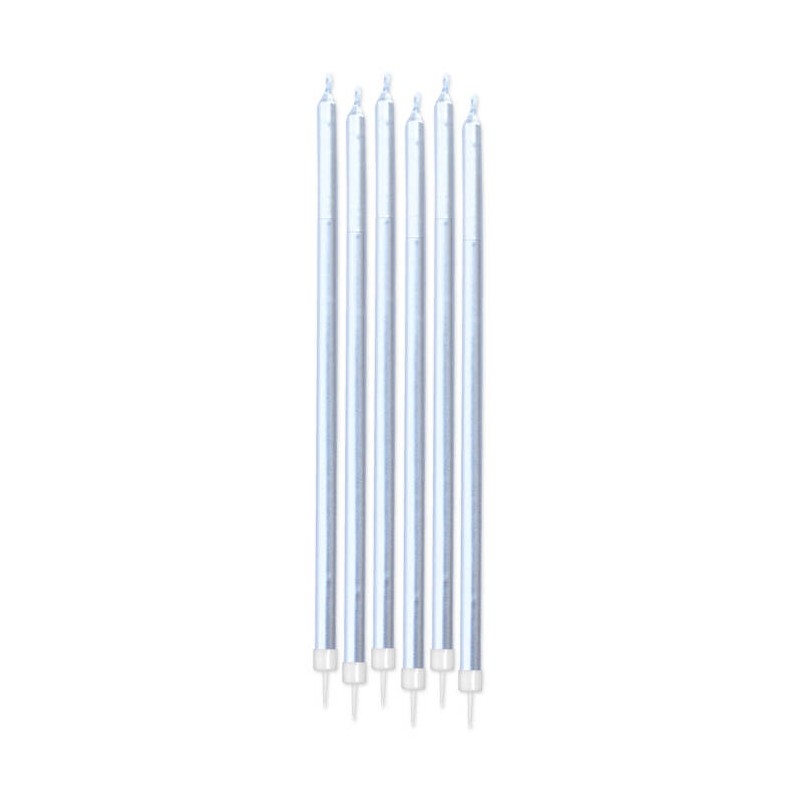 CANDELINE MATITE PERLATE ARGENTO 15cm + SUPP. 6pz