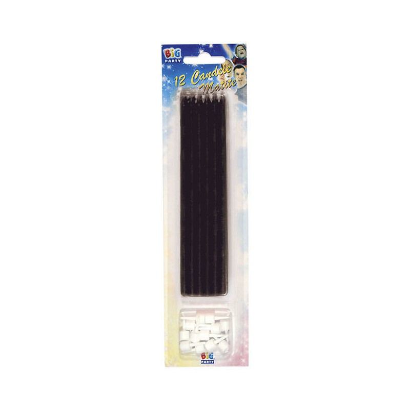 CANDELE MATITE C/SUPPORTO 15cm NERE 12pz
