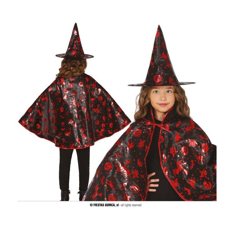 SET STREGA CAPPELLO CON MANTELLO NERO/ROSSO 50cm