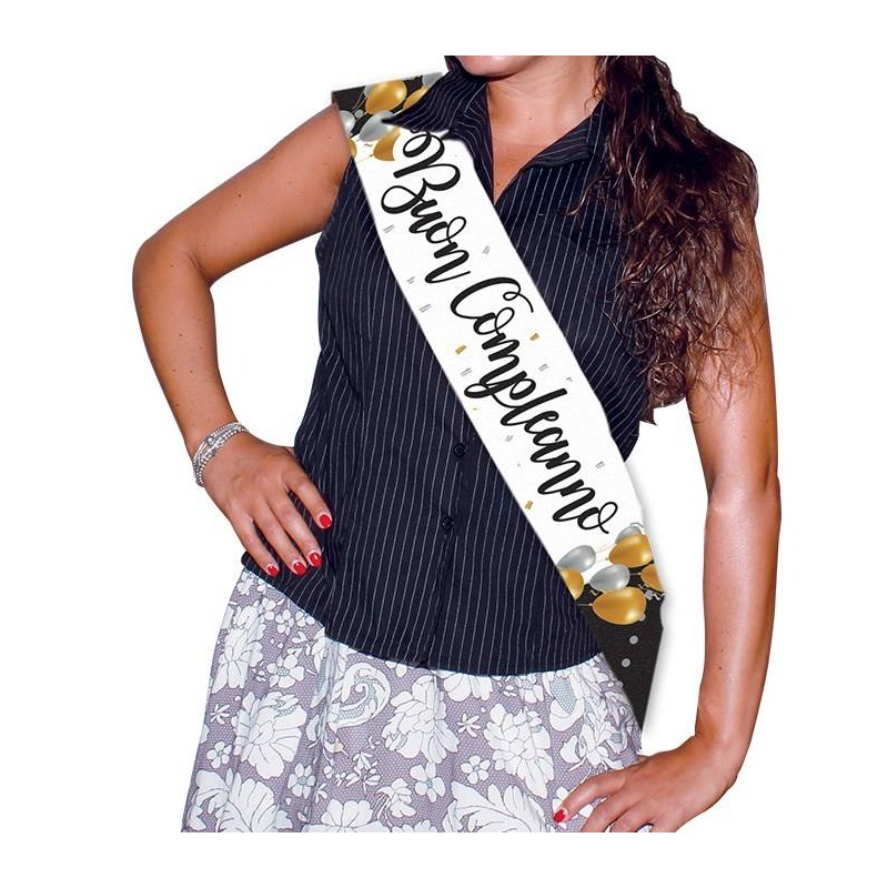 FASCIA PREMIO BUON METALLIZZATA BUON COMPLEANNO PRESTIGE 168x10cm
