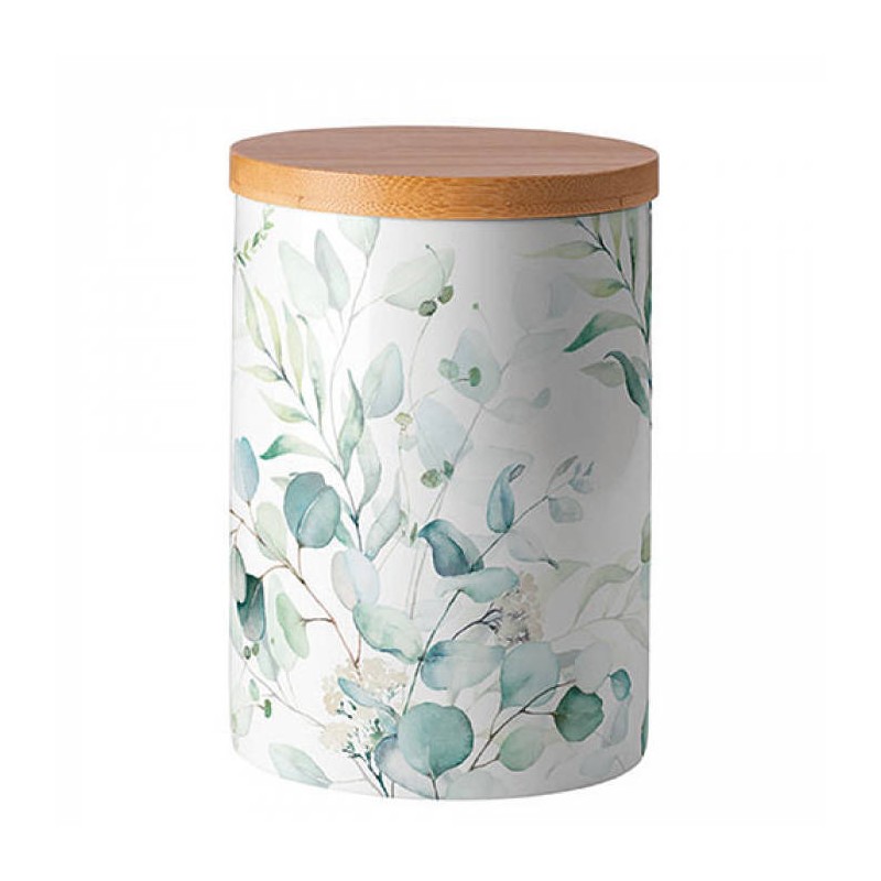 BARATTOLO CERAMICA EUCALIPTUS ALL OVER C/TAPPO BAMBU ø10cm H.13,5cm