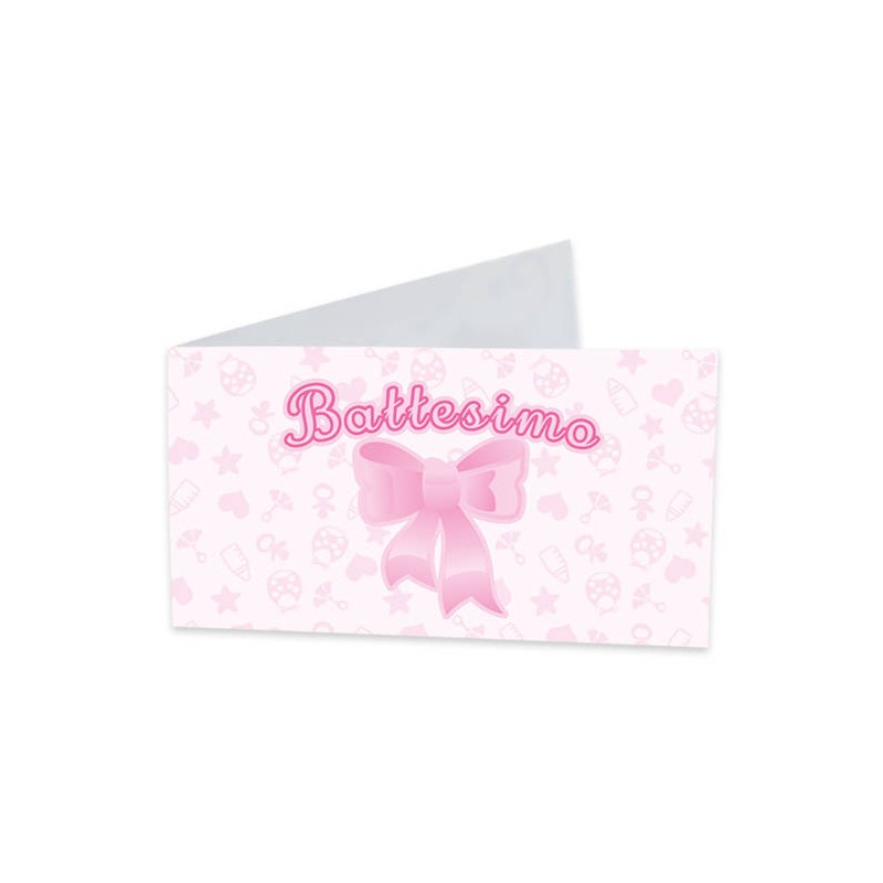 BIGLIETTINO BOMBONIERA 9x2,5cm BATTESIMO BABY ROSA 25pz