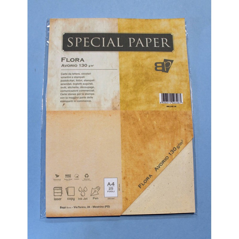 CARTA A4 21x29,7cm FLORA AVORIO gr.130 25fg