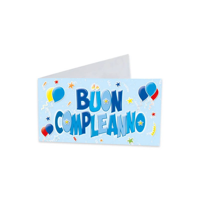 BIGLIETTINO BOMBONIERA 9x2,5cm BUON COMPLEANNO CELESTE 25pz