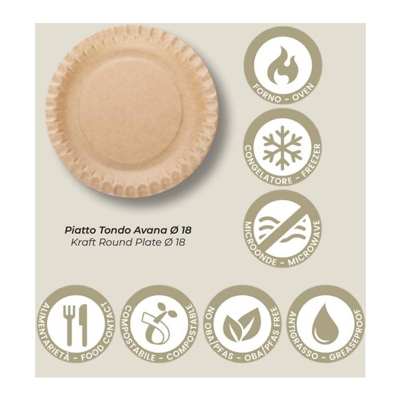 PIATTO TONDO AVANA CARTONCINO ø18 50pz STREET FOOD