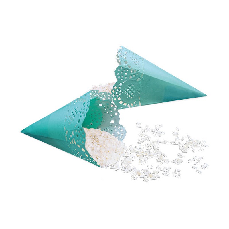 CONI PORTA RISO MERLETTATI CARTA ACQUA MARINA 12pz 17cm