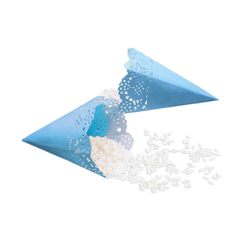 CONI PORTA RISO MERLETTATI CARTA CELESTE 12pz 17cm