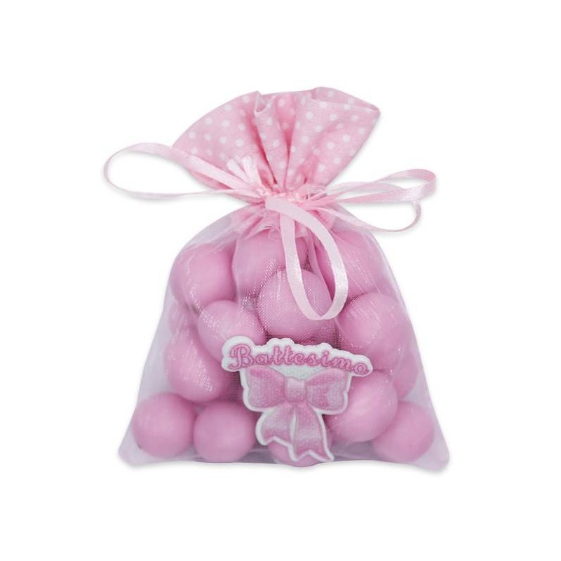 SACCHETTINI IN TULLE BATTESIMO ROSA cm 8x8 12pz