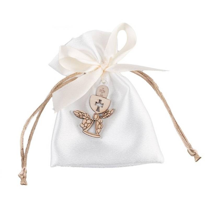SACCHETTO C/CALICE COMUNIONE LEGNO H.11cm BIANCO 12pz