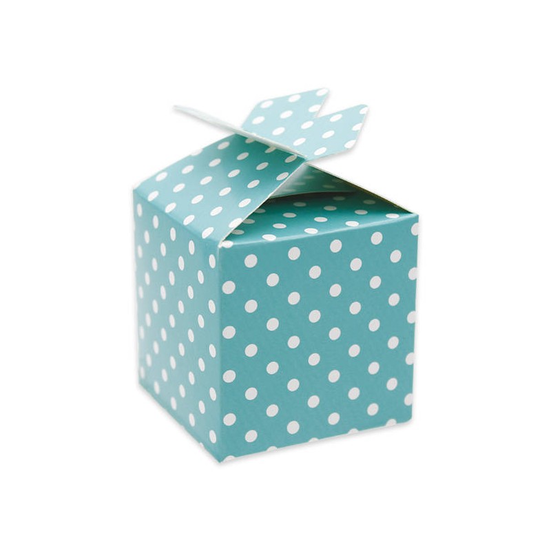 SCATOLINA CUBETTO FIOCCO 5X7X5cm FIOCCO POIS ACQUAMARINA 25pz