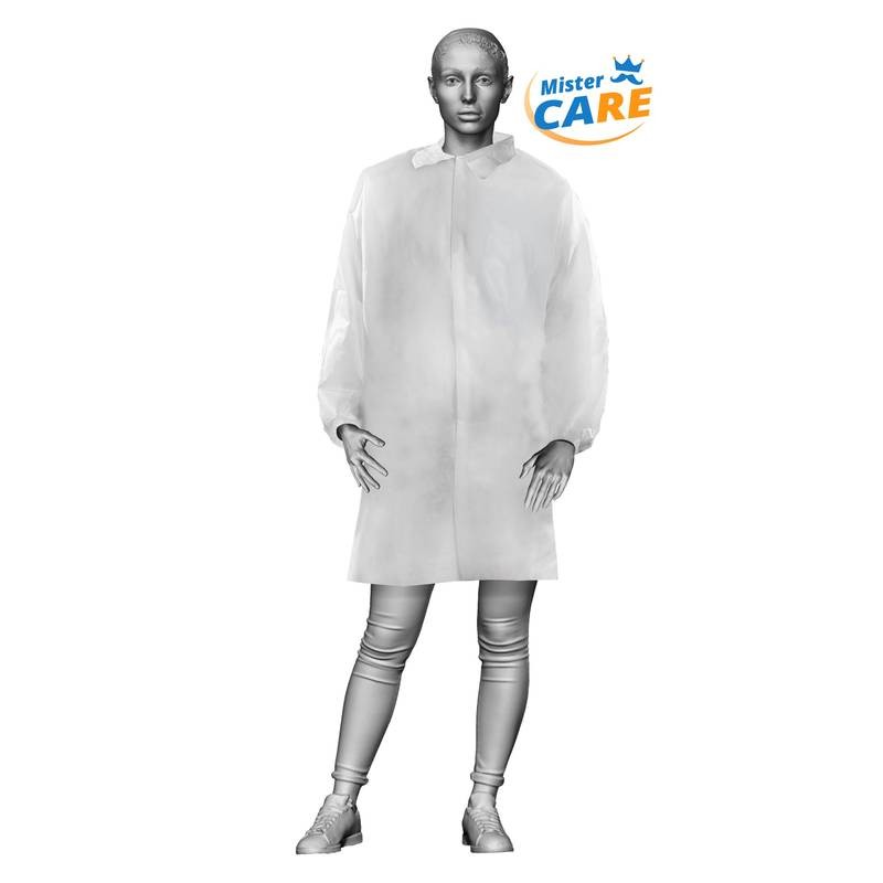 Camice da laboratorio con colletto a camicia,chiusura a velcro ed elastici nei polsi