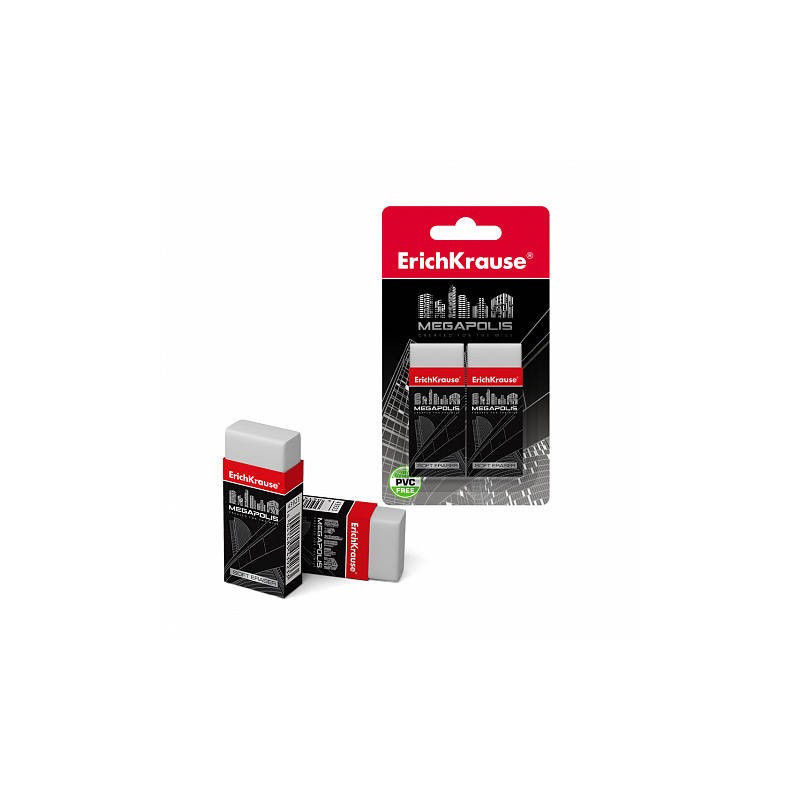 Una gomma morbida di forma classica realizzata in gomma termoplastica moderna, ecologica e ipoallergenica (TPR). Confezionato nell'involucro di cartone originale. Senza polvere. La composizione chimica della gomma non contiene PVC. Dimensioni 51x22x13 mm.