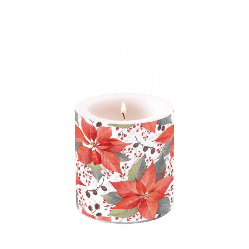 CANDELA POINSETTIA AND BERRIES ø7,5CM H.8cm