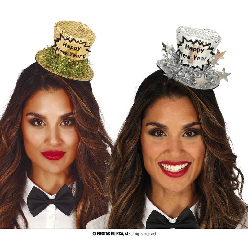 CAPPELLINO CON CERCHIETTO "HAPPY NEW YEAR" ARGENTO E ORO 1pz ASS.TO