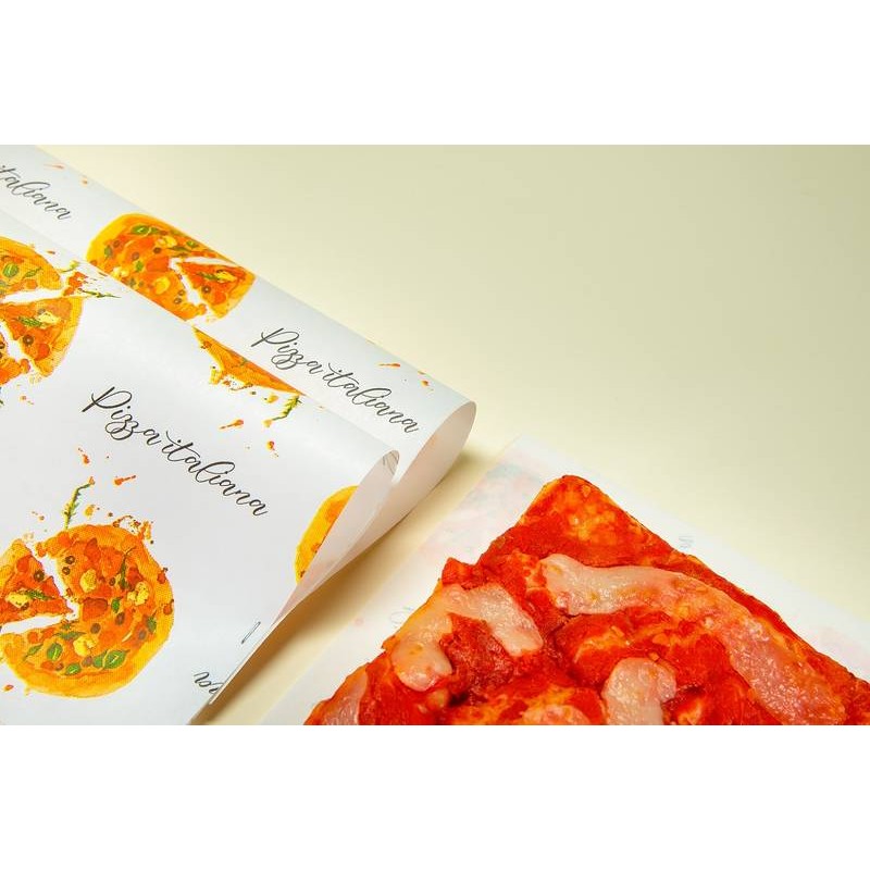 Pura cellulosa per alimenti. Esclusiva linea per la pizza d’asporto. Il sottilissimo strato di polietilene non lascia trapassare l’unto e rende il packaging impermeabile garantendo la giusta conservazione dell’alimento.