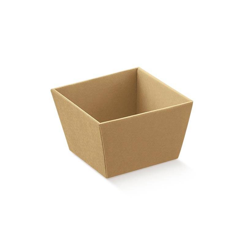 Contenitore in cartone accoppiato, di forma conica, per confezionare prodotti enogastronomici o esporre oggetti e articoli vari. Disponibile in formati quadrati e rettangolari.