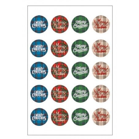 ETICHETTE ADESIVE TARTAN MERRY CHRISTMAS ø3 240pz