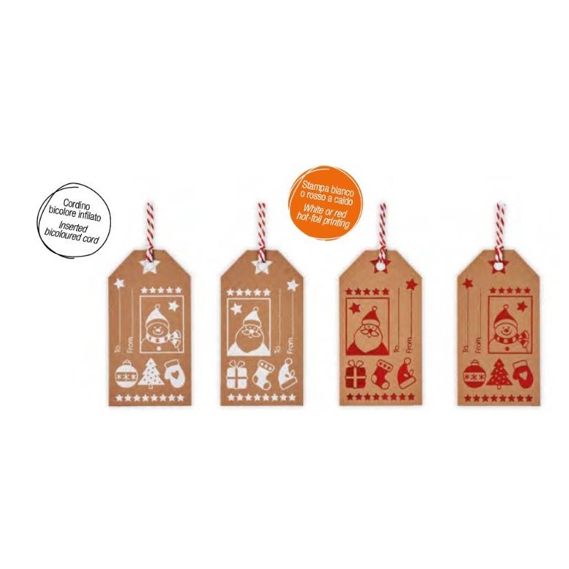 SEGNAPACCO NATALIZIO FUSTELLATO KRAFT C/CORDINO 4,5x8,5cm 100pz