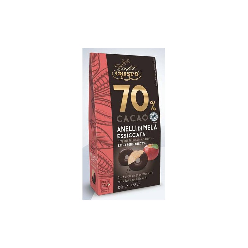 ANELLI DI MELA RICOPERTI DI CIOCCOLATO FONDENTE 70% 130gr