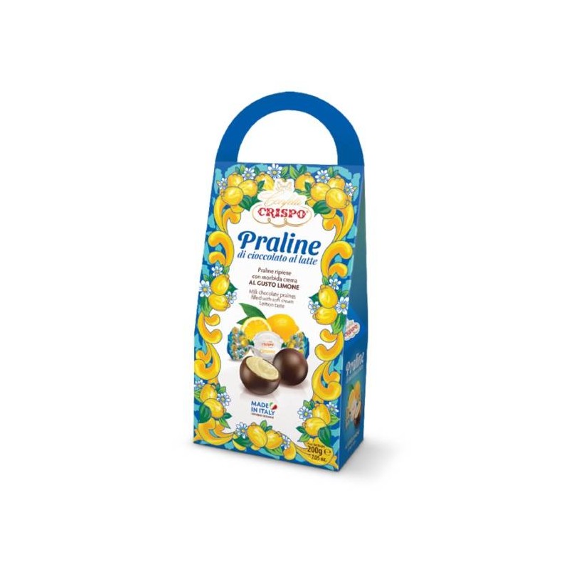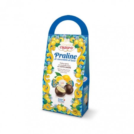 PRALINE DI CIOCCOLATO AL LATTE CON RIPIENO DI CREMA AL GUSTO LIMONE 200gr