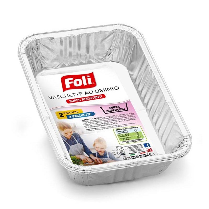VASCHETTA ALLUMINIO 2PORZIONI 4pz FOLI'
