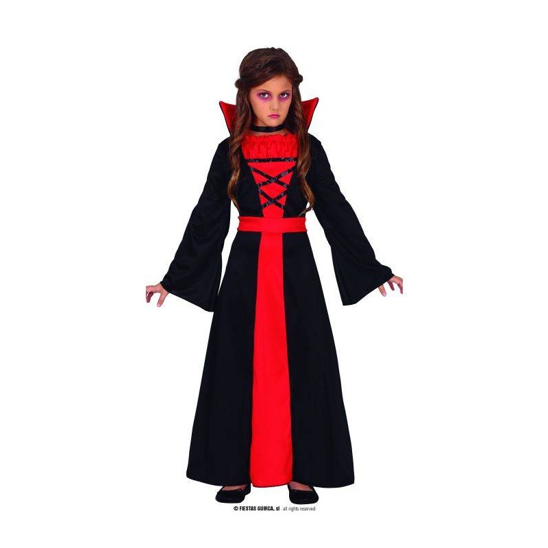 COSTUME BAMBINA VAMPIRO ABITO LUNGO CON COLLETTO 3-4 anni