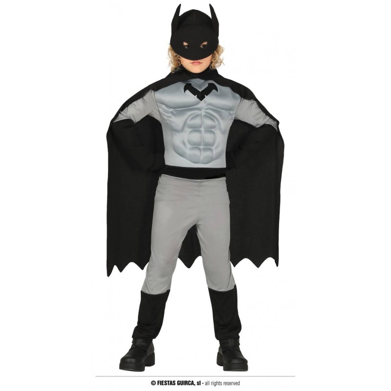 COSTUME SUPEREROE DELLA NOTTE MUSCOLOSO BIMBO 7-9 ANNI