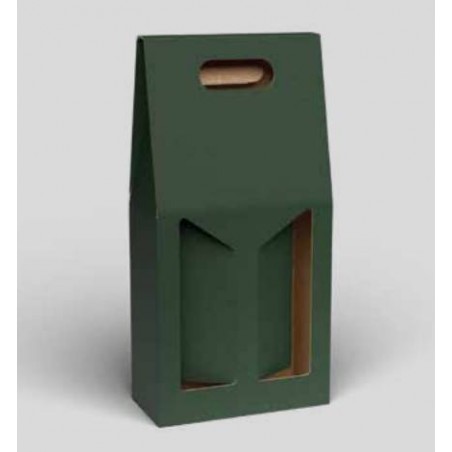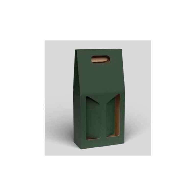 SCATOLA 2 BOTTIGLIE C/MAN. E FIN. 18x9x38cm VERDE LISCIA