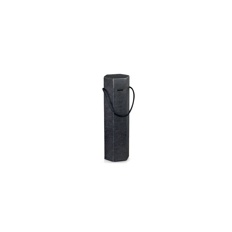 SCATOLA 1 BOTTIGLIA C/COR 9,5x9,5x35,5cm ESAGONALE SETA NERO