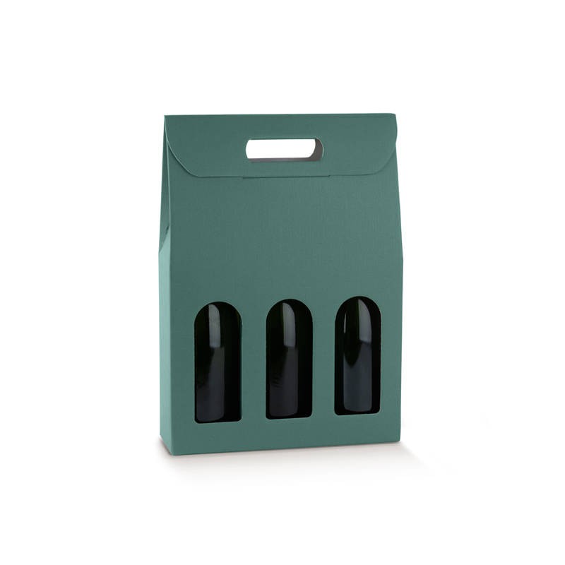 SCATOLA 3 BOTTIGLIE C/MAN. E FIN. 27x9x38,5cm FIBRA VERDE