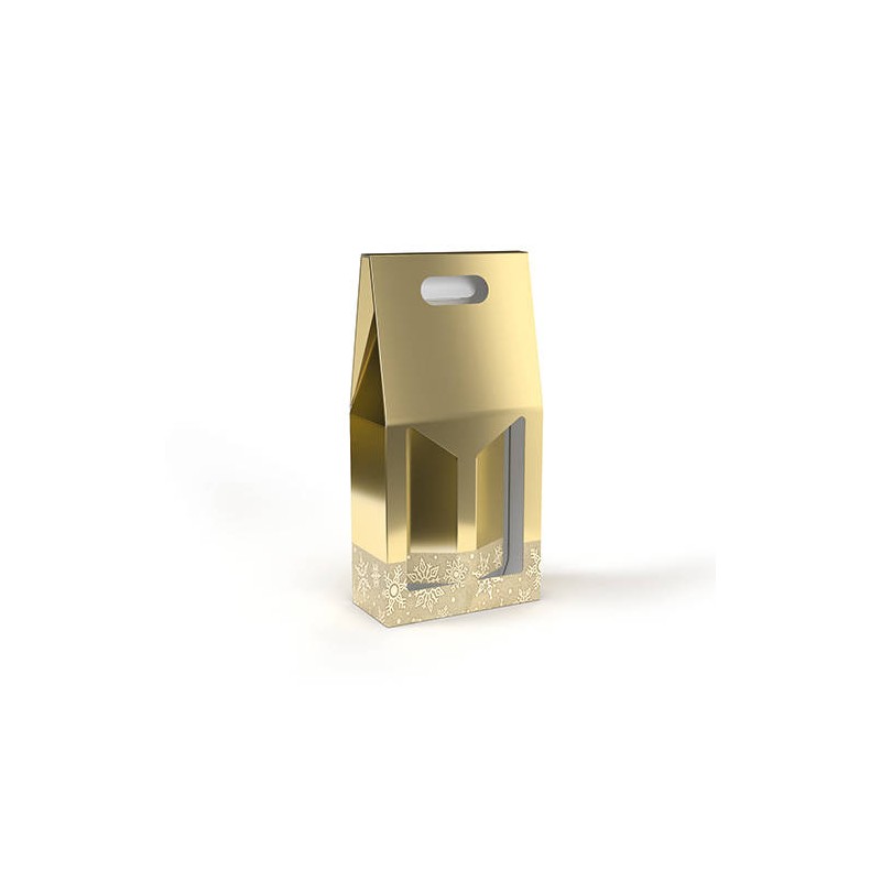 SCATOLA 2 BOTTIGLIE C/MAN. E FIN. 18x9x38cm GLITTER ORO