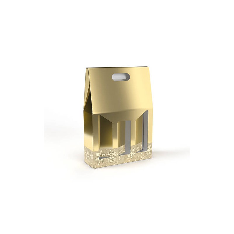 SCATOLA 3 BOTTIGLIE C/MAN. E FIN. 27x9x38cm GLITTER ORO
