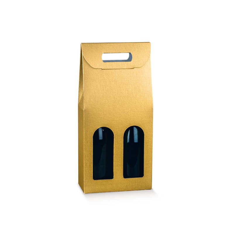 SCATOLA 2 BOTTIGLIE C/MAN. E FIN. 18x9x38,5cm FIBRA ORO