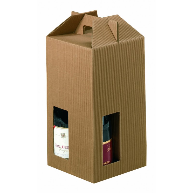 SCATOLA 4 BOTTIGLIE C/ MAN. E FIN. 18x18x38cm ONDA AVANA