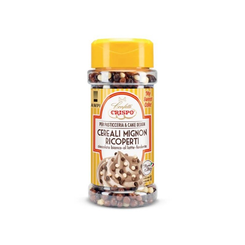 Cereali mignon di cioccolato al latte, bianco e fondente per pasticceria e cake design