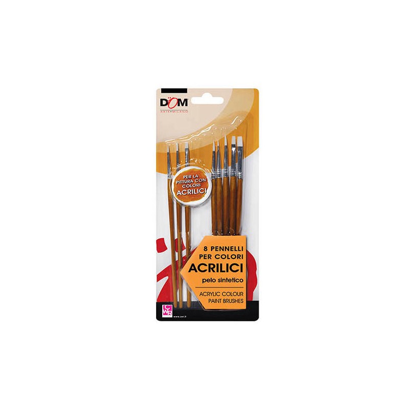 Set 8 pennelli sintetici manico corto. Punte e misure assortite. Ideali per acrilico.