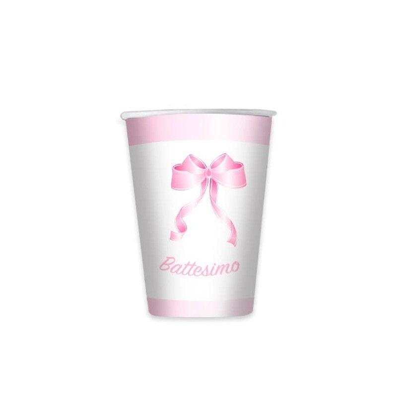 BICCHIERI 200cc BATTESIMO ROSA 8pz