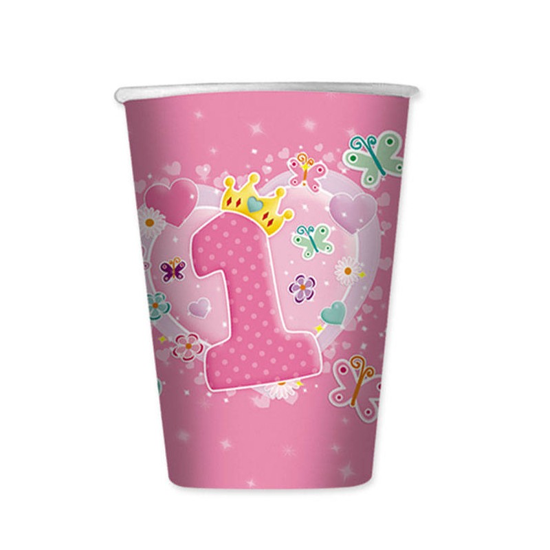 BICCHIERI 200cc PRIMO COMPLEANNO ROSA 10pz
