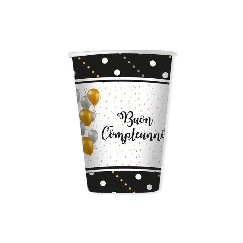 BICCHIERI 200cc BUON COMPLEANNO PRESTIGE 8pz