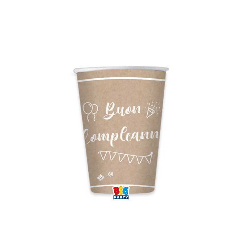 BICCHIERI CARTA 200cc BUON COMPLEANNO KRAFT 8pz