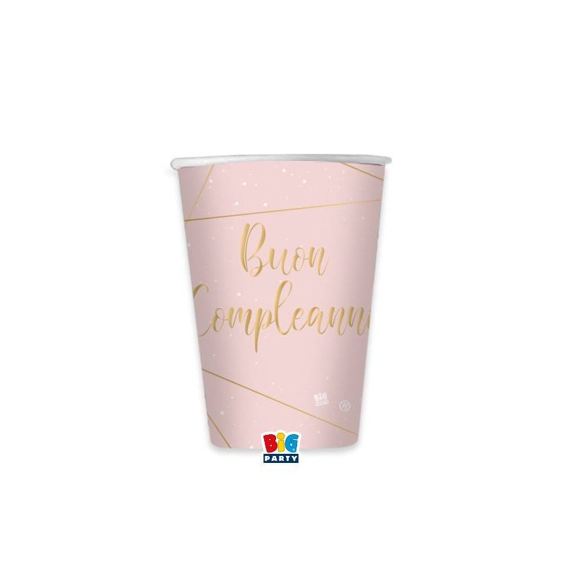 BICCHIERI BUON COMPLEANNO ROSA E GOLD 200cc 8pz