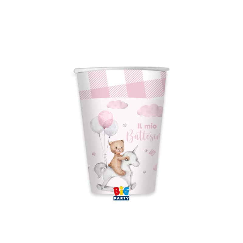 BICCHIERI 200cc BATTESIMO TEDDY BEAR ROSA 8pz