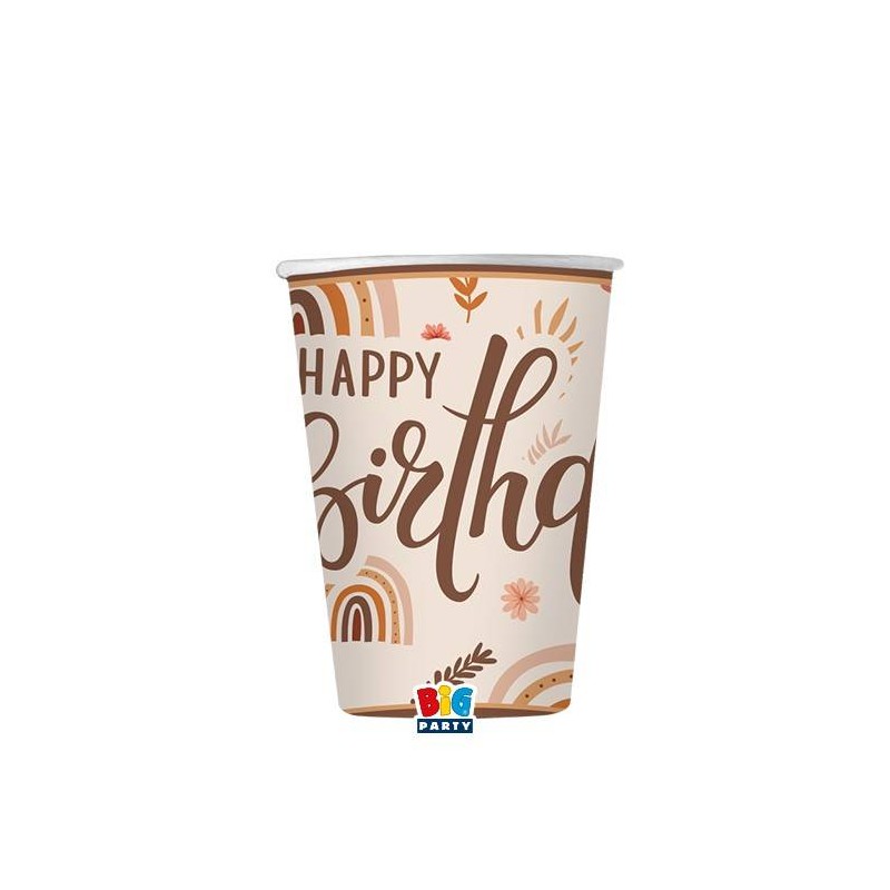 BICCHIERI CARTA 200cc Happy Birthday Boho 8pz