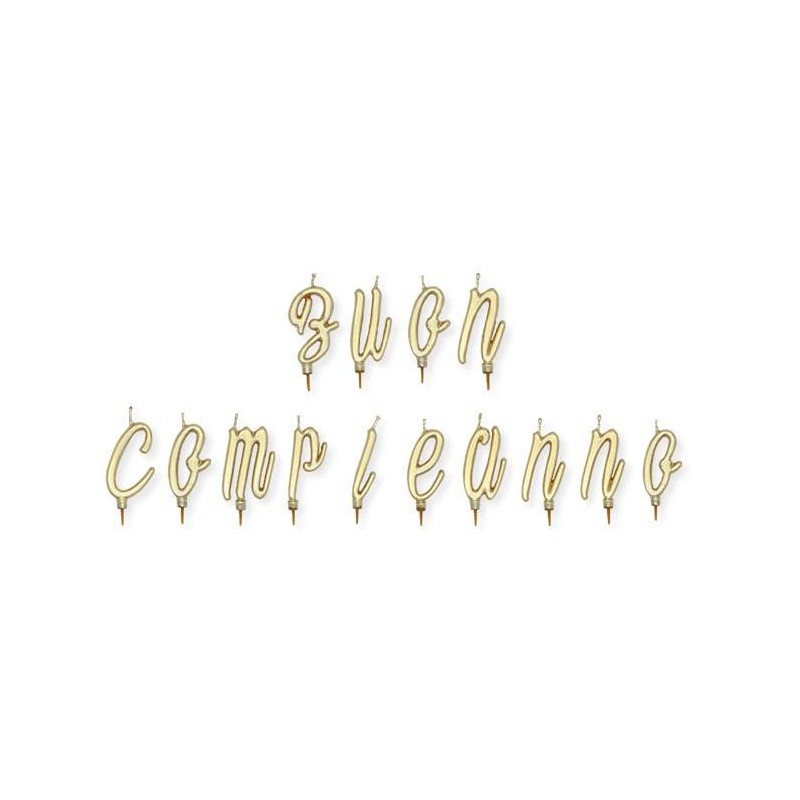 CANDELINE 5cm "BUON COMPLEANNO" ORO METAL C/BASE