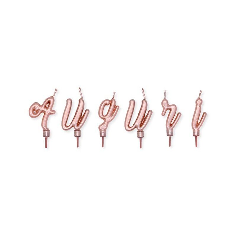CANDELINE 5cm "AUGURI" ROSEGOLD METAL C/BASE