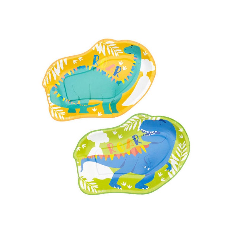 PIATTI SAGOMATI 26x19cm DINO ROAR ASS.TI 8pz