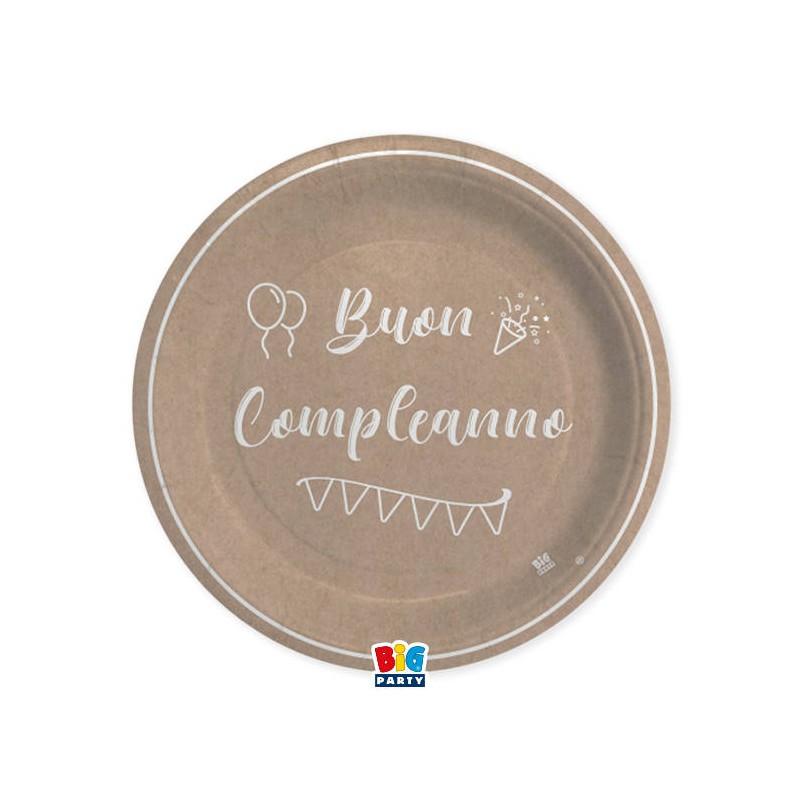 PIATTI CARTA PIANI ø24cm BUON COMPLEANNO KRAFT 8pz