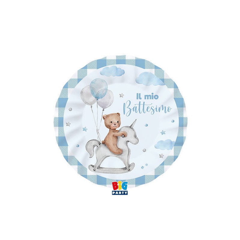PIATTI DESSERT BATTESIMO TEDDY BEAR CELESTE 8pz