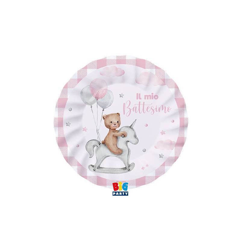 PIATTI BATTESIMO TEDDY BEAR ROSA ø20 8pz