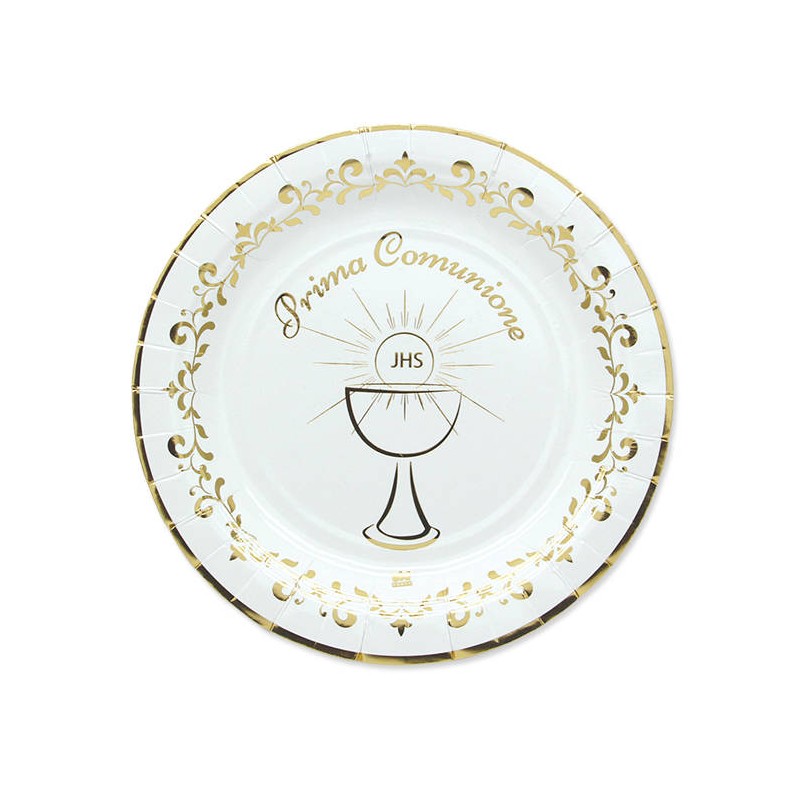 PIATTI PIANI PRIMA COMUNIONE GOLD METAL 8pz